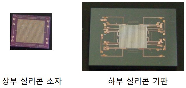 그림 16은 레이저 접합 공정을 위한 상부 실리콘 소자와 실리콘 기판의 사진이다. 표 3에 나타낸 바와 같이 실리콘 소자의 크기는 8mm×6mm이고, 솔더 범프는 Cu Pillar 위에 Sn/Ag 솔더 캡이 형성된 구조이며, 솔더 범프의 직경 및 피치는 각각 20μm, 50μm이고, 솔더 범프의 개수는 4,152개이다.